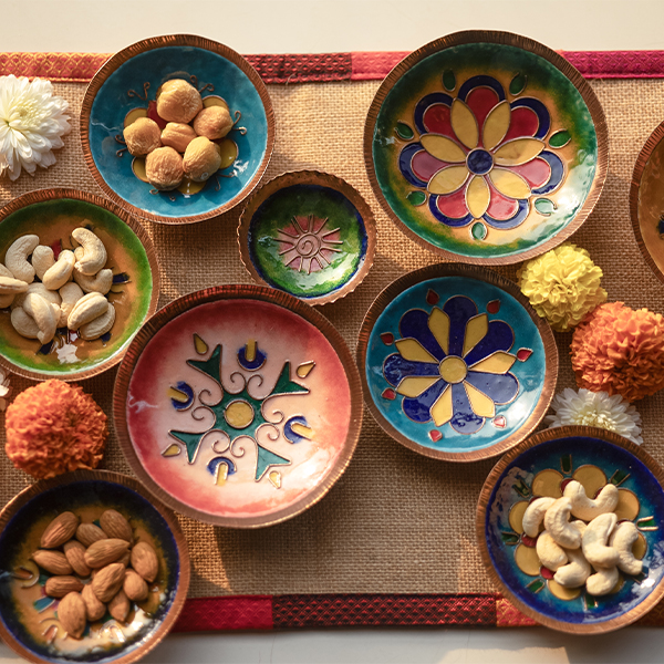Studio Meeraavi’s copper enamel creations showcase vibrant artistry and traditional craftsmanship, reimagined through contemporary design and fine detailing.