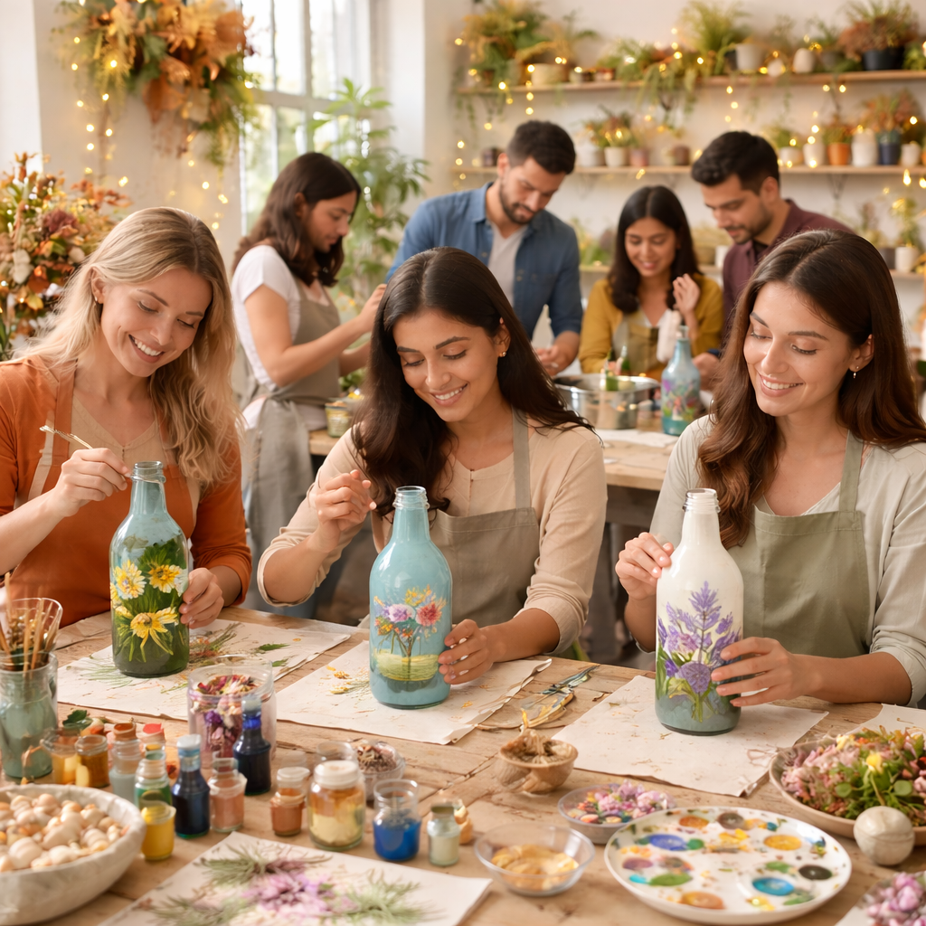 Turn everyday bottles into beautiful works of art in our Bottle Art Workshop at Studio Meeraavi. This hands-on creative session focuses on transforming glass bottles using painting, textures, and decorative techniques.